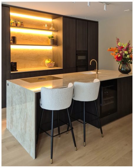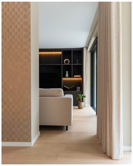 Deze opdrachtgevers hebben in België een fraaie nieuwbouwvilla laten realiseren. Het verzoek aan mij was om een ontwerp & styling plan te maken voor de benedenverdieping, met focus op de woon-en leefkeuken, TV kamer, het kantoor en de hal. Daarnaast op de 1e verdieping, de master bedroom.